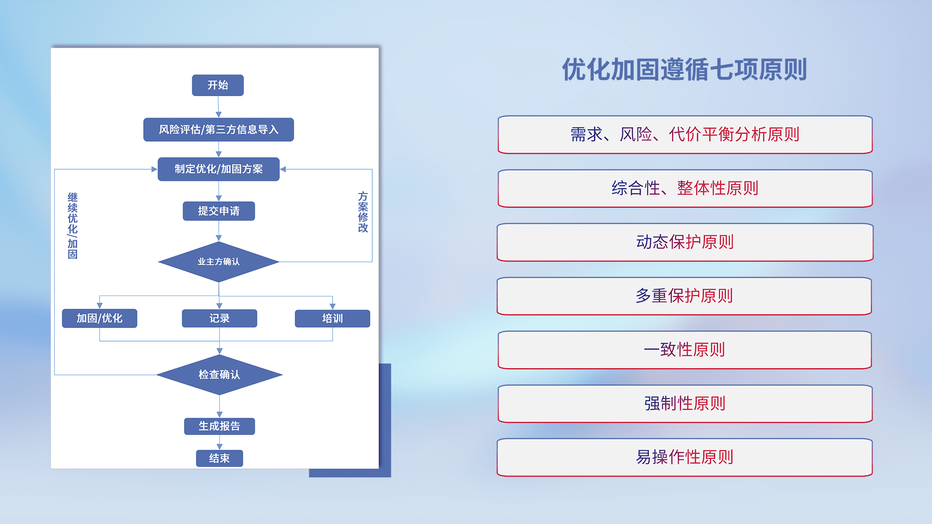 最大程度利用现有资产,,对评估发现的问题进行封堵与整改,,,防止漏洞被利用,,提升整体网络安全性,,为客户带来高标准的优化加固服务。。